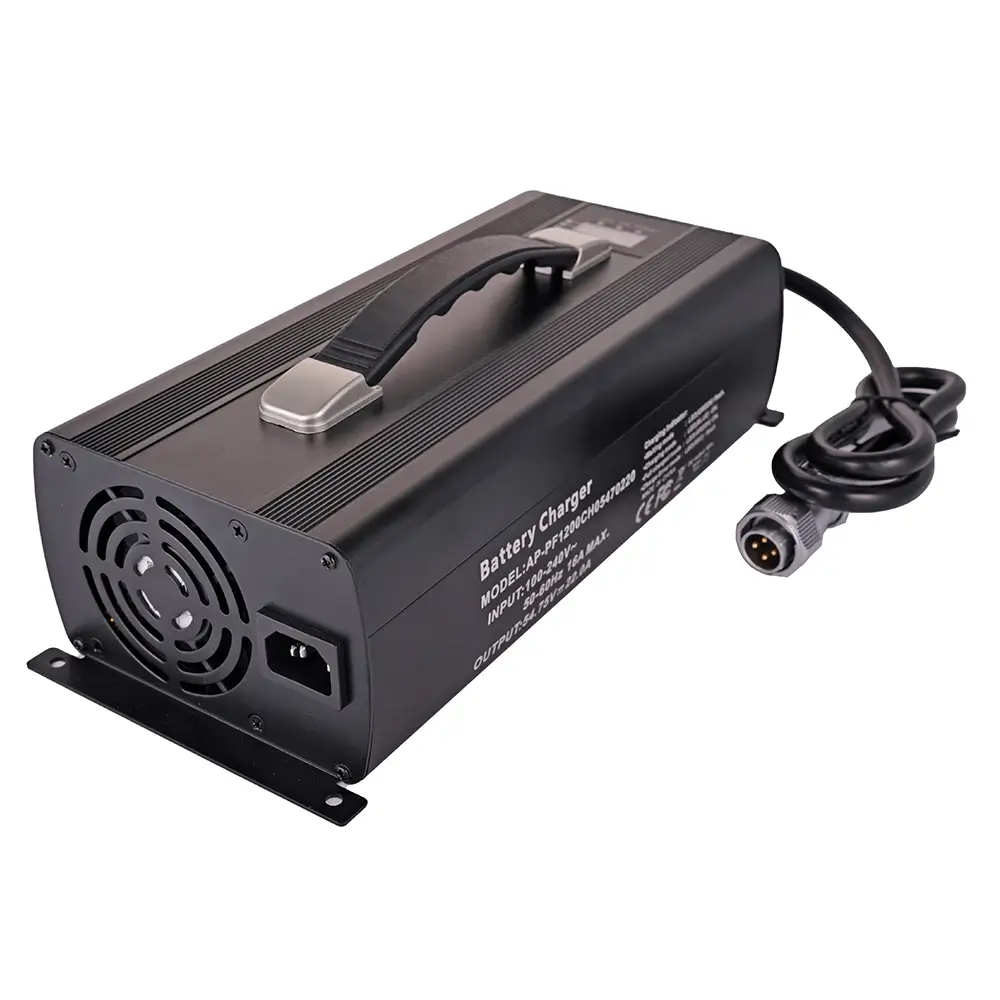 1 kW charger with a nominal voltage of 72 V, featuring wide-range 100–240 VAC input and multiple output options. It delivers a power factor of 0.99, low THD, and IP65 level protection. It is enclosed in in a compact design with multiple built-in protection functions. Optional CAN or RS485 communication is supported.